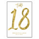 Tarjetas de número de tabla boda - Número 18 - con efecto de Relieve metalizado dorado (imitación, impresión como imagen) y texto de personalizable - puede añadir el nombre de la novia y del novio y la fecha de boda impresa en fondo blanco