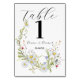 Tarjeta De Mesa Números de tabla Boda Flores salvajes primavera