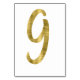Tarjetas de número de tabla - Número 9 - con efecto de Relieve metalizado dorado (falso, impreso como imagen) sobre fondo blanco