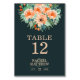 Las elegantes flores acuáticas en tonos melocotón a naranja recortadas con un follaje verde verde azulado a jade resaltan estas Tarjetas de Mesa con letras de melocotón de moda. Personalice la información que se imprime en la parte delantera y trasera (doble cara). NOTA: Cree y agregue cada tarjeta de número de tabla que necesite a su carrito individualmente. Cambie el fondo verde azulado a cualquier color para que coincida con el tema boda. COORDINANDO invitaciones a bodas o eventos y otros artículos disponibles en nuestra tienda para completar su suite de invitaciones —> http://bit.ly/2VebyjV <—