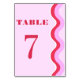 Tarjeta De Mesa Ola Retroonda 70s Rojo y Rosa Mesa 7 Boda T