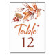 Eleva la decoración de la recepción con nuestro elegante número de mesa Terracota de color de tono de la Tierra de otoño. Este sofisticado número de mesa le da un toque de elegancia artística a su boda de otoño.