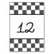 Create custom table number cards for your wedding or other special event. These cards have a black and white checkerboard pattern at the top and bottom of the card with black squares with a painted look and alternating plain white squares. Your number appears at the center of each card on both the front and the back. Please note you will have to fill in the number and create a separate card for each table number that you need.