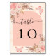 Mármol dorado y arco dorado subió decorado con pasto de pampas estilo boho, oro rosa y flores rosadas rubíes, mariposas. Personalice y agregue sus números de tabla uno por uno.