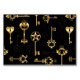 Patrón incomparable de llaves antiguas, doradas y de silueta sobre fondo negro.