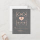 Quirky y moda Geeky Glasses Chalkboard Boda Place Card en melocotón con un bonito corazón flanqueado por dos pares de anteojos nerds, una pareja masculina y una pareja de chicas que representan al novio y a la novia en un ambiente de pizarra. ¡Esta tarjeta de acompañantes fuera de lo normal es perfecta para tu boda geek! Se proporciona espacio en este producto para escribir los nombres y números de la tabla donde cada uno de sus invitados estará sentado. Haga clic en el botón "Personalizar" para encontrar opciones de personalización adicionales.