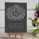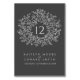Diseño de hojas en círculo boda números de tabla en blanco sobre gris de carbón. Agregue sus propios números de tabla por uno, nombre y fecha de boda. Hay disponibles otros colores y elementos bodas coincidentes. © Dibujo y diseño original de la hoja de Sarah Trett para www.mylittleedenweddings.com en zazzle.