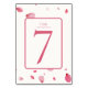 Esta tarjeta de número de mesa de boda muestra un hermoso diseño de acuarela de pétalos de rosa con letra y numeración elegantes. ¡Personalízala con tus datos!