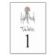 Add a touch of whimsical elegance to your wedding reception with these charming table numbers. Featuring a delicate hand-drawn sketch of a chandelier adorned with a soft pink bow, these cards evoke a romantic and sophisticated atmosphere. The simple yet striking design, with the word 'Table' elegantly scripted above a bold, clear number, ensures your guests can easily find their seats. Perfect for vintage-inspired, classic, or fairytale weddings, these table numbers will beautifully complement your reception decor.