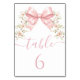 Add a touch of preppy elegance to your 'Baby in bloom' themed baby girl shower with our adorable table number sign! Featuring a delicate blush pink coquette bow ribbon surrounded by pink flowers, this sign is the perfect blend of shabby chic charm and sophistication. A stylish addition to your sweet celebration!