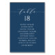 plan de asientos con número de tabla de personalizable. Presenta un guión caprichoso azul marino y blanco y una tipografía clásica. Personalice agregando sus propios detalles. Este minimalista salón es perfecto para bodas, duchas para bebés, duchas de novias, cumpleaños y mucho más.