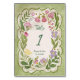 Tarjeta De Mesa Plantilla de número de tabla floral verde dibujada
