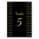 Plantilla elegante moderna de tarjeta de número de mesa con guión manuscrito negro y dorado.