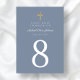 Personalizado Religiosa Cruz Azul Niño Primera Comunión Número de Mesa. Parte de la Suite de Invitación Dusty Blue Cross Boy First Community con invitación, papel y accesorios de fiesta a juego.