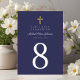 Personalizado Religiosa Cruz Navy Blue Boy Primer Número De Mesa De Comunión.