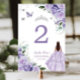 Tarjeta De Mesa Princesa Floral Púrpura Quinceañera XV Plateada 16