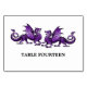 Perfecto para un sofisticado boda con temática de juego de mesa de fantasía, esta elegante y única tarjeta de mesa Boda de Dragones con un par de dragones violetas de colores vivos. Fácil de personalizar, simplemente agregue los números de tabla apropiados en el campo de texto proporcionado. Haga clic en "Personalizar" para buscar opciones de personalización adicionales.