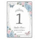 Personalize this lovely baby blue and soft pink floral silver quinceañera / birthday party / bridal shower / baby shower / wedding table number card easily and quickly. Simply click the "Edit Using Design Tools" button to modify the text, wording, font style, font size, and font color. The butterflies and crown are movable, resizable, duplicatable, and removable, allowing you to customize the design to suit your occasion.