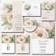 Nuestra hermosa y moderna suite de invitaciones de boda cuenta con rosas blancas, flores y elegantes verdes. Esta sencilla y elegante invitación de boda es perfecta para tu día especial. Los ramos de flores blancas son clásicos y atemporales, y nuestra suite de invitaciones incluye todo lo esencial que necesitas para crear una primera impresión impresionante.