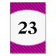 Esta tarjeta de tabla incluye rayas diagonales rosadas/violetas y un número de tabla de personalizable dentro de una forma tipo bandeja.