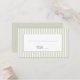 Esta tarjeta de lugar de boda presenta un diseño limpio y moderno con rayas verticales en tonos grises suaves que enmarcan una caja central con borde blanco. La disposición es equilibrada y simétrica, creando un aspecto elegante y sofisticado perfecto para eventos formales. La fuente de escritura personalizable añade un toque de personalización, lo que la hace ideal para bodas o reuniones de alta gama. La paleta de colores minimalista garantiza versatilidad, permitiendo que las tarjetas complementen cualquier decoración de mesa mientras mantienen un atractivo atemporal.