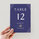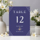 Tarjeta de Número de Mesa Rayas Náuticas Ancla Dorada Bodas Azul Marino