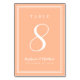 Una plantilla para cualquier número, este diseño de número de mesa de boda simple, minimalista y elegante presenta un diseño contemporáneo con un borde de doble marco en blanco crujiente sobre un fondo de melocotón nuevo y de moda. El diseño chic proporciona una sofisticación moderna y atemporal. Personalice el diseño de la mesa de boda con su nombre, fecha de boda y número de mesa en letra y caligrafía elegantes. La parte trasera de la tarjeta es un duplicado de la parte delantera. Personalice fácilmente y ordene uno para cada mesa con los números de mesa individuales.