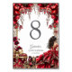 Tarjeta De Mesa Red Golden Tiara Floral Quinceañera