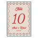 Tarjeta De Mesa Red Script Blue Line Retro Wedding Table Number