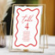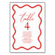 This is a Red White Elegant Wavy Border Wedding Table Number w/ Names!