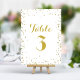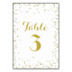 Añade un toque de brillo y sofisticación a tu recepción de bodas con estos elegantes números de mesa. Con una delicada dispersión de falsos puntos de confeti purpurina de oro sobre un fondo blanco crujiente, estas tarjetas crean un aspecto moderno y de moda. Fácilmente personalizable con sus números de tabla para una configuración de mesa coherente e inolvidable.