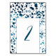 Un diseño moderno y abstracto de mosaico Terrazzo en tonos azul marino y azul claro. Este diseño también cuenta con un arreglo moderno de las iniciales personalizadas de la novia y el novio. El reverso imita el frente. Esta sencilla combinación de colores crea un estilo sofisticado, moderno y de moda. Elegante diseño de tarjetas de números de mesa de boda con elementos modernos. La sencilla configuración de la tipografía le da un estilo distinto. También hay disponibles invitaciones de boda coincidentes y otros artículos de papelería. Personalizar el número y compra cada número de tabla individualmente según cuántos números de tabla necesite.