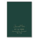 Presentación de la tarjeta número de mesa Boda de la Romance Rosa: colección Art Nouveau Splendor, una adición refinada y elegante a la decoración de la recepción. La parte delantera de la tarjeta ofrece una imagen cautivadora con rosas, creando un diseño armonioso y visualmente atractivo. Se destaca una leyenda grande y sofisticada, "TABLE", seguida de un número que se muestra con elegancia. Pasando a la parte posterior de la tarjeta, un fondo verde de botella sencillo y de moda proporciona una pizarra limpia para la personalización. Aquí tiene la opción de incluir texto personalizado, como los nombres de la pareja, la fecha de la ceremonia y la ubicación del boda. Este toque cuidado no sólo añade un elemento personal a la tarjeta de número de la mesa, sino que también asegura una conexión cohesiva con el tema general de la colección Rosa Romance: Art Nouveau Splendor. Esta tarjeta de número de la mesa sirve como un detalle exquisito para guiar a los invitados a sus mesas, contribuyendo así al ambiente general de la recepción de la boda. Su diseño atemporal se alinea a la perfección con el resto de la colección, creando un estilo sofisticado y cohesivo para su celebración.