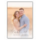 This wedding table card features a warm, romantic photograph of a couple standing closely together in an outdoor setting with soft, golden tones that evoke the feeling of sunrise or sunset. The design includes elegant cursive typography for "table 12" and simple sans-serif text for names, creating a personalized touch perfect for weddings. The composition is centered and balanced, highlighting the intimate mood conveyed by the smiling subjects and serene backdrop. With its realistic style and gentle lighting, this card captures a genuine moment of joy and connection, making it ideal for celebrating love at your special event.