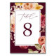 Tarjeta De Mesa Romantic Deep Burgundy Floral Bridal Shower