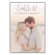 This wedding table card features a romantic beach scene with two individuals standing close together, set against a softly blurred ocean backdrop under a pastel sky. The design uses a soft color palette of muted peach and pale blue tones, creating an ethereal and intimate atmosphere. Elegant script typography for "table 12" is paired with clean sans-serif text, adding a touch of sophistication to the minimalist layout. Perfect for weddings or celebrations of love, this card exudes warmth and tranquility, making it ideal for setting a tender mood at your special event.