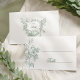 Simple and elegant sage green etched rose with editable text fields. The back features a complementary froral wreath with nesting doves.