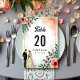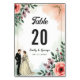 Este elegante número de mesa de boda floral acuático es perfecto para un boda moderno. El diseño romántico presenta un elegante marco floral acuático con un ilustracion de novia y novio y una caligrafía negra sobre un fondo blanco.