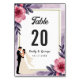 Este elegante número de mesa de boda floral acuático es perfecto para un boda moderno. El diseño romántico presenta un elegante marco floral acuático con un ilustracion de novia y novio y una caligrafía negra sobre un fondo blanco.
