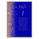 El borde izquierdo de esta elegante y moderna tarjeta boda número de mesa tiene un borde rosa de imitación de oro purpurina. La palabra "tabla" aparece en un guión de escritura manuscrita subió rosa y caprichosa sobre un fondo azul real. Agregue los nombres de los invitados que se asignen a cada mesa.