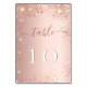 Un fondo dorado subió, decorado con chispas falsas. Personalice y sus números de tabla. El menú de la cena está disponible en nuestra tienda.