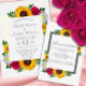 El diseño presenta elegantes girasoles, rosas y margaritas con una paleta de colores dorados amarillo, rosa y blanco. El diseño también incluye un marco gris de carbón vegetal. Puede cambiar el color de fondo en la parte delantera y de vuelta al color de su elección o dejar ambos en blanco.