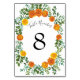 Tarjeta De Mesa Rosas naranjas Boda Floral Modern