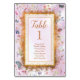 Añada un toque de elegancia a su recepción con nuestro Rótulo de Tabletop, un Boda de Flor Silvestre. Con un fondo rosa con flores silvestres extravagantes y acentos de oro rosa simulados, estos carteles de mesa combinan perfectamente con el tema boda de primavera o verano. El diseño bohemio y rústico añaden encanto y elegancia a los ambientes de las mesas. Completamente personalizable con cualquier mensaje que elija para crear una apariencia coherente y elegante para su día especial.