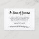 These charming kraft brown rustic "in lieu of favors" place cards are a wonderful way to let your guests know you've made a donation to your favorite charity in honor of them on your wedding day, as well as inform your guest of their seat.