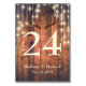 Tarjeta de mesa rústica con fondo de madera con luces de cuerda. Los colores del tipo de letra y los estilos de fuente del diseño de la tarjeta de tabla son todos totalmente personalizables.
