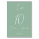Sage Green, elegante, moda, guión, caligrafía Boda número de tabla. Simple, minimalista. A la moda, números de tabla de presupuesto. Puede personalizar con sus nombres, número y fecha.