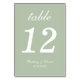 Un número de tabla boda simple para un esquema de color boda verde sabio. Es sólo texto blanco sobre un fondo verde sabio. Todo, excepto el propio número, está escrito en un guión caligráfico elegante. Para hacer la foto de portada se usó una imagen de parodia de Freepik.