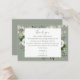 Una correa rústica ilumina a un boda floral de color verde sabio, gracias a la tarjeta de recepción, personalizada con un mensaje especial y los nombres de la novia y del novio. Diseñado por Thisisnotme©