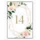 Señal de mesa número 14 de flores acuarela geométricas | Señal de mesa elegante y femenina que incluye ilustraciones de acuarela de rosas y peonías blancas, durazno y rosa, acentos de follaje y marco geométrico de lámina falsa. Esta señal de mesa floral es perfecta para eventos de primavera y jardín.